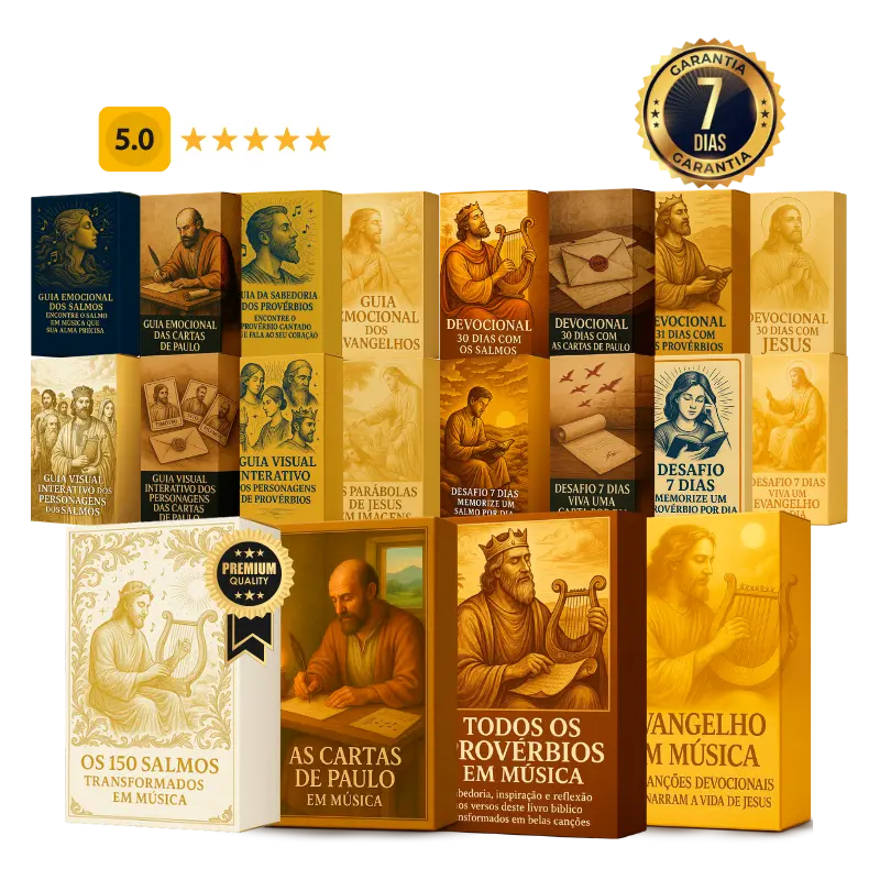 A Bíblia em Música é uma coleção completa que transforma os textos da Bíblia em canções devocionais. São 351 músicas inspiradas nos Salmos, Provérbios, Cartas de Paulo e Evangelhos — compostas com base nas Escrituras, para te ajudar a memorizar, meditar e viver a Palavra de Deus de um jeito novo: cantando.